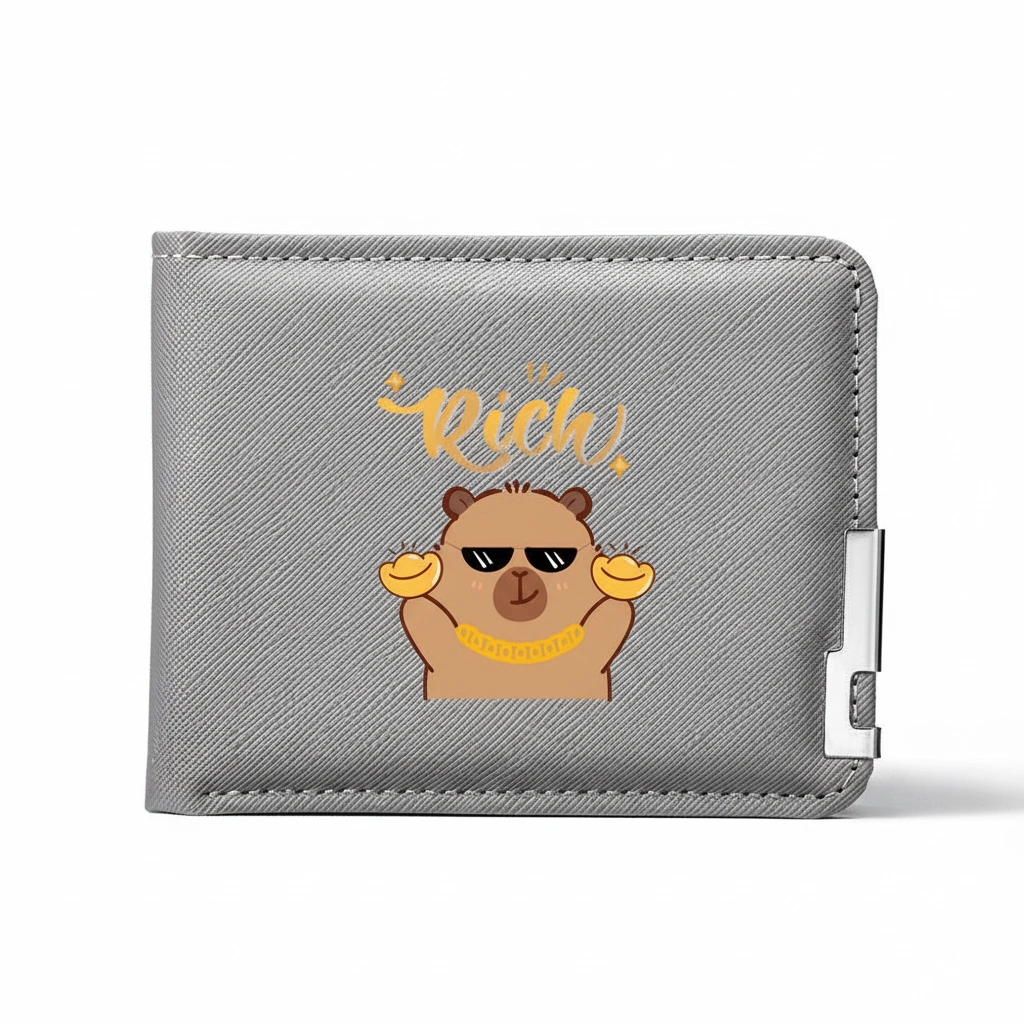 Capybara Grey Textured Wallet – Modern Bi-Fold Billfold with Metal Detail (4 Styles)