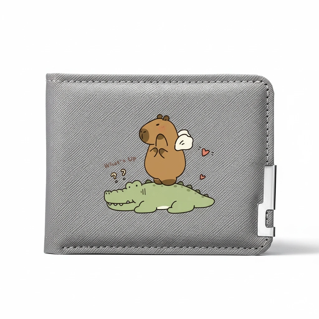 Understated Style with a Fun Twist Find the perfect balance between professional and playful with this Grey Textured Bi-Fold Wallet. The medium-grey tone offers a sophisticated, modern look that goes well with everything, from business casual to weekend wear. Crafted with a durable crosshatch finish (Saffiano style), this wallet feels substantial in the hand and resists daily scuffs. It’s the ideal choice for those who appreciate a neutral accessory that still showcases their personality through a whimsical capybara design.