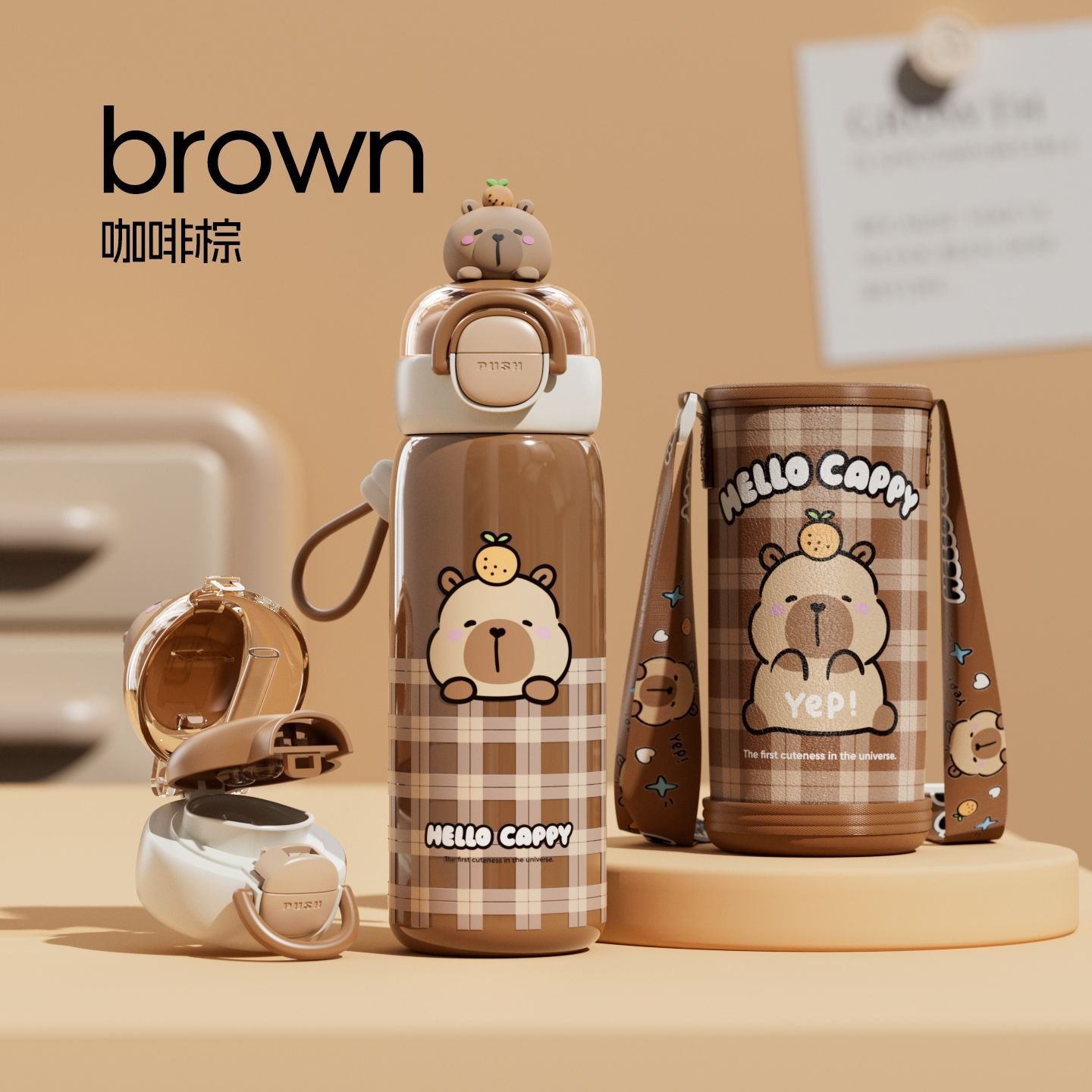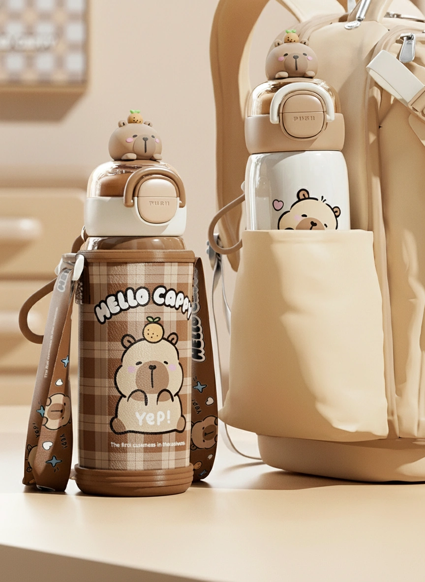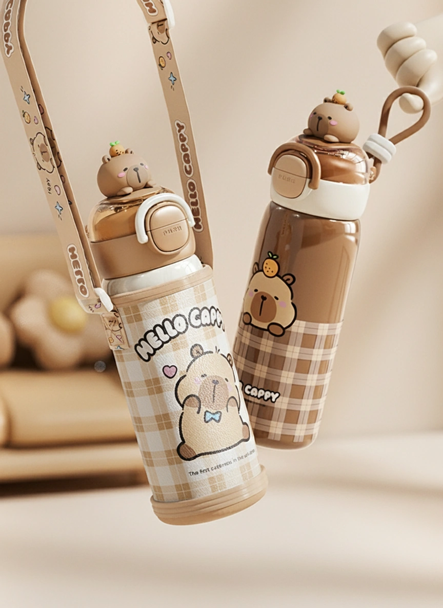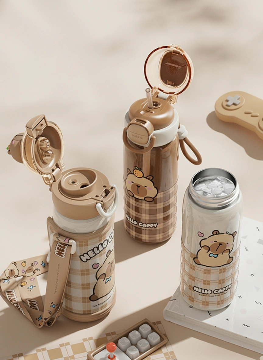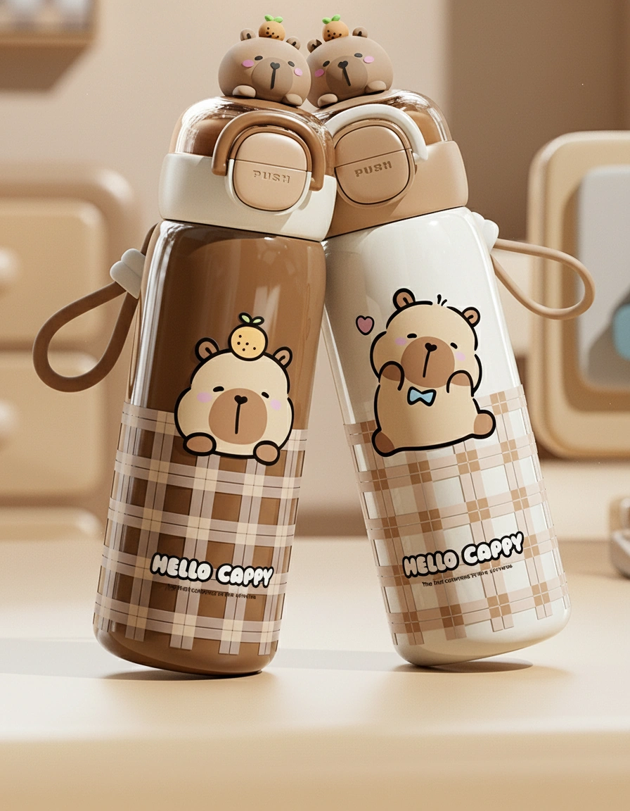 With its adorable “Hello Cappy” plaid design and a friendly 3D capybara keeping watch from the lid, this isn’t just a water bottle—it’s an emotional support beverage container.