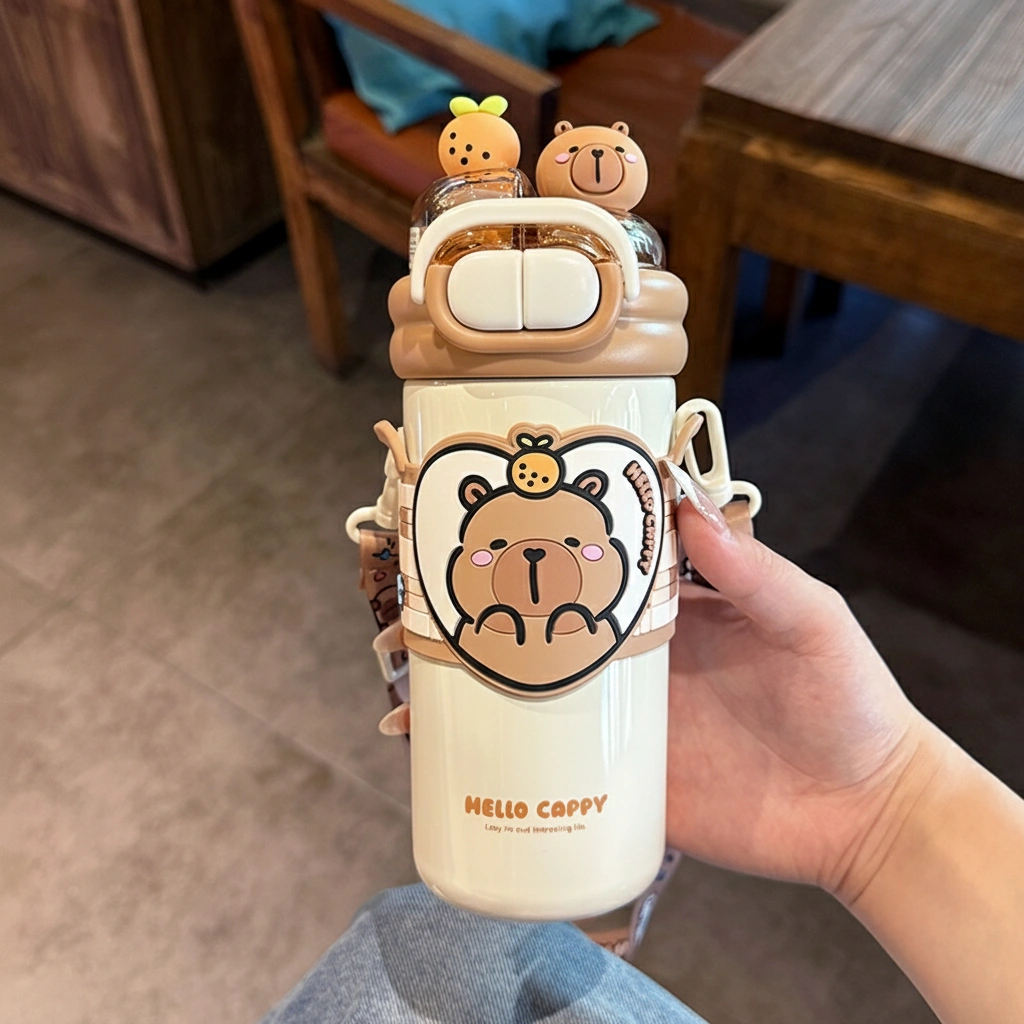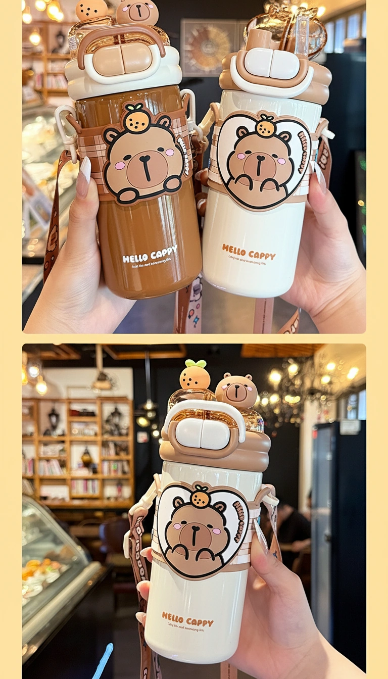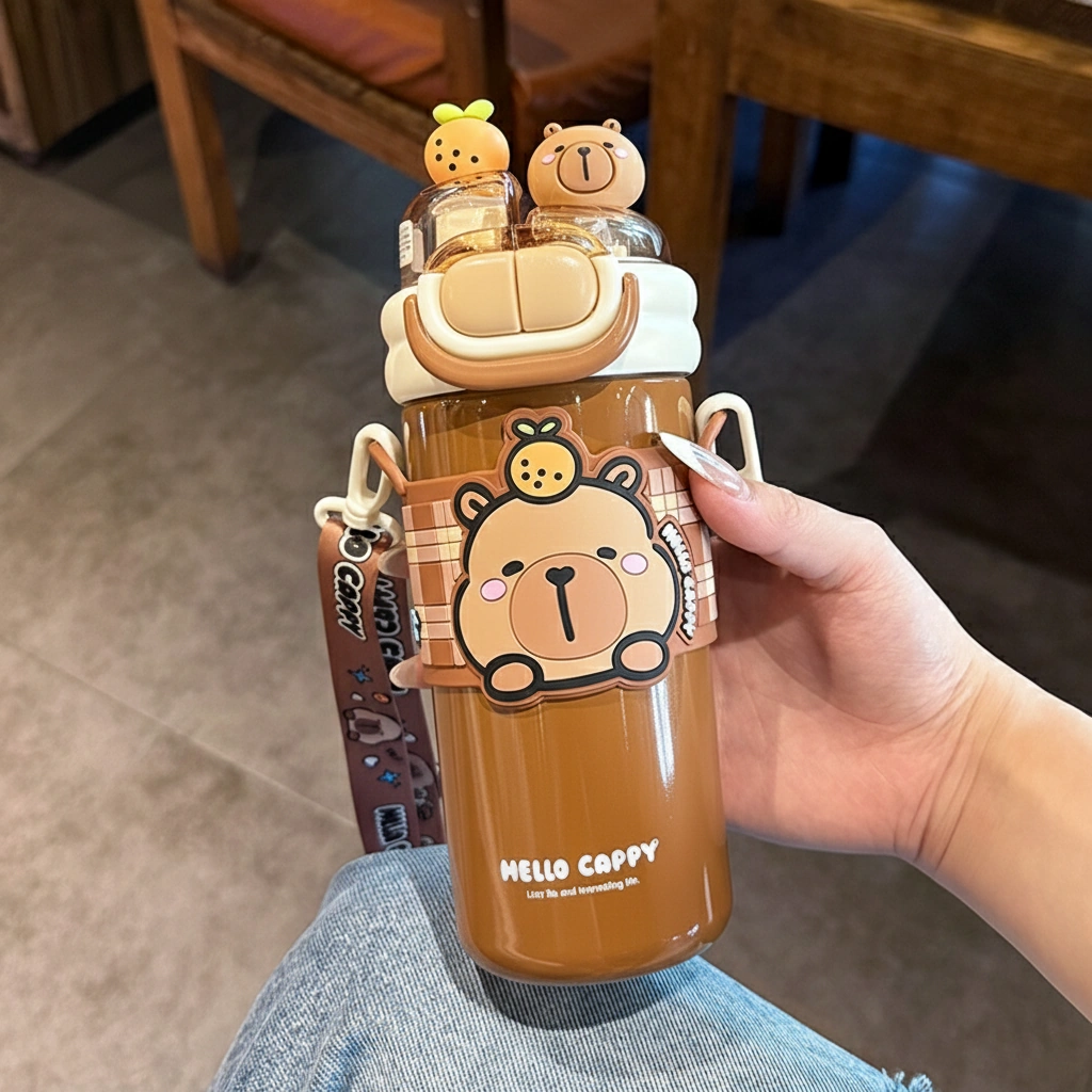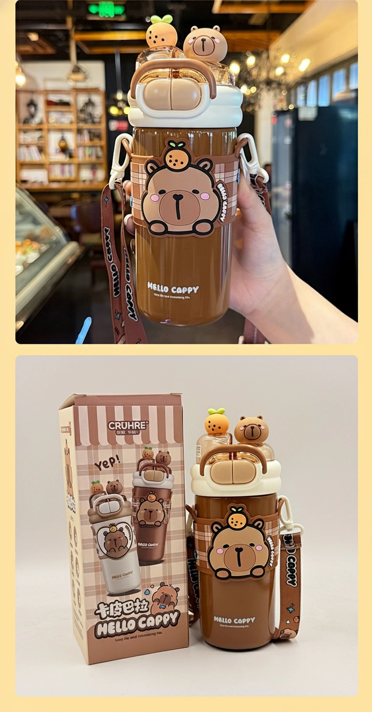 • Adorable 3D Lid Details: The leak-proof lid is crowned with cute 3D figurines—a tiny capybara head and a fresh orange—adding a playful touch to every sip.